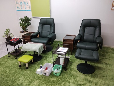 足つぼの椅子は2台ございますので、2名様まで同時に施術を受けていただくことができます。